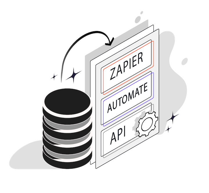 Integrate various tools into your system via Zapier, Power Automate or directly as API.